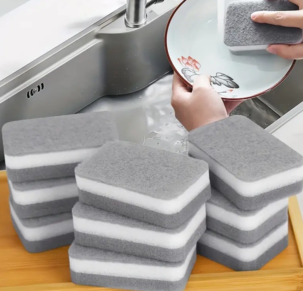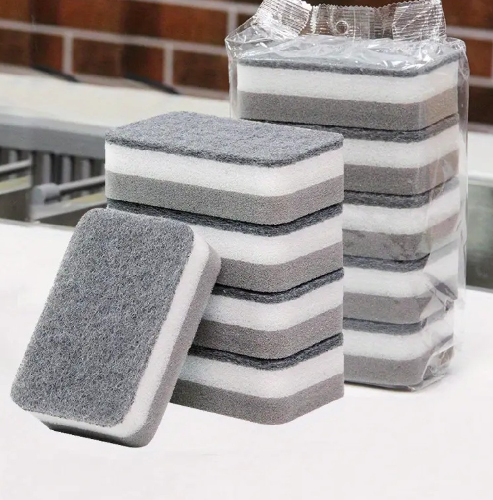 Conjunto de 10 esponjas mágicas de limpieza de tres capas para fregar platos reutilizables, estropajos para ollas y sartenes, herramientas de limpieza de cocina