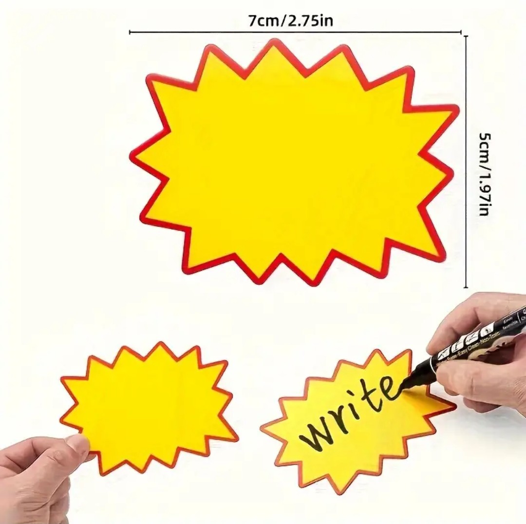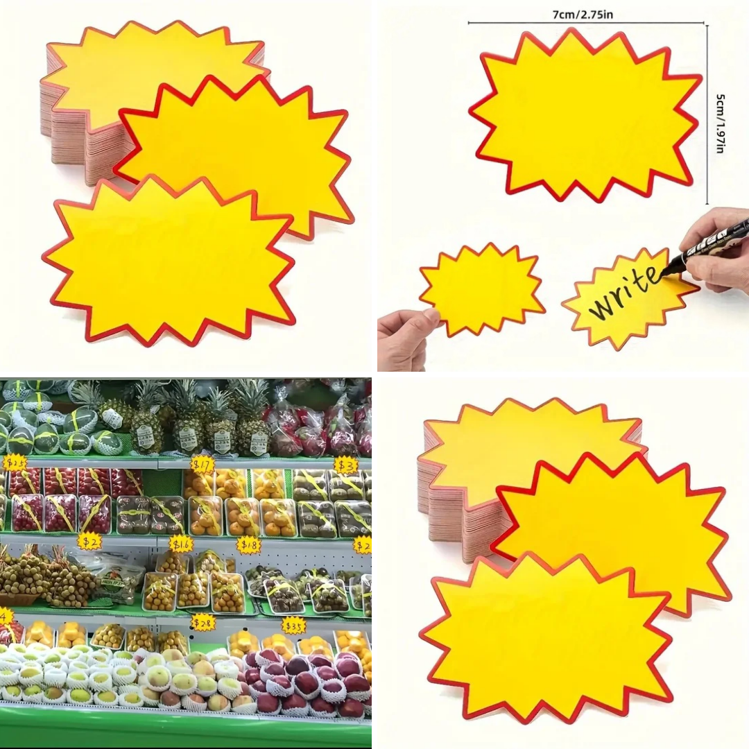 Etiquetas de precio amarillas con estallido, 50 unidades, etiquetas de estrella en blanco para tiendas minoristas, supermercados y tiendas de comestibles, póster de supermercado con etiqueta de explosión en blanco