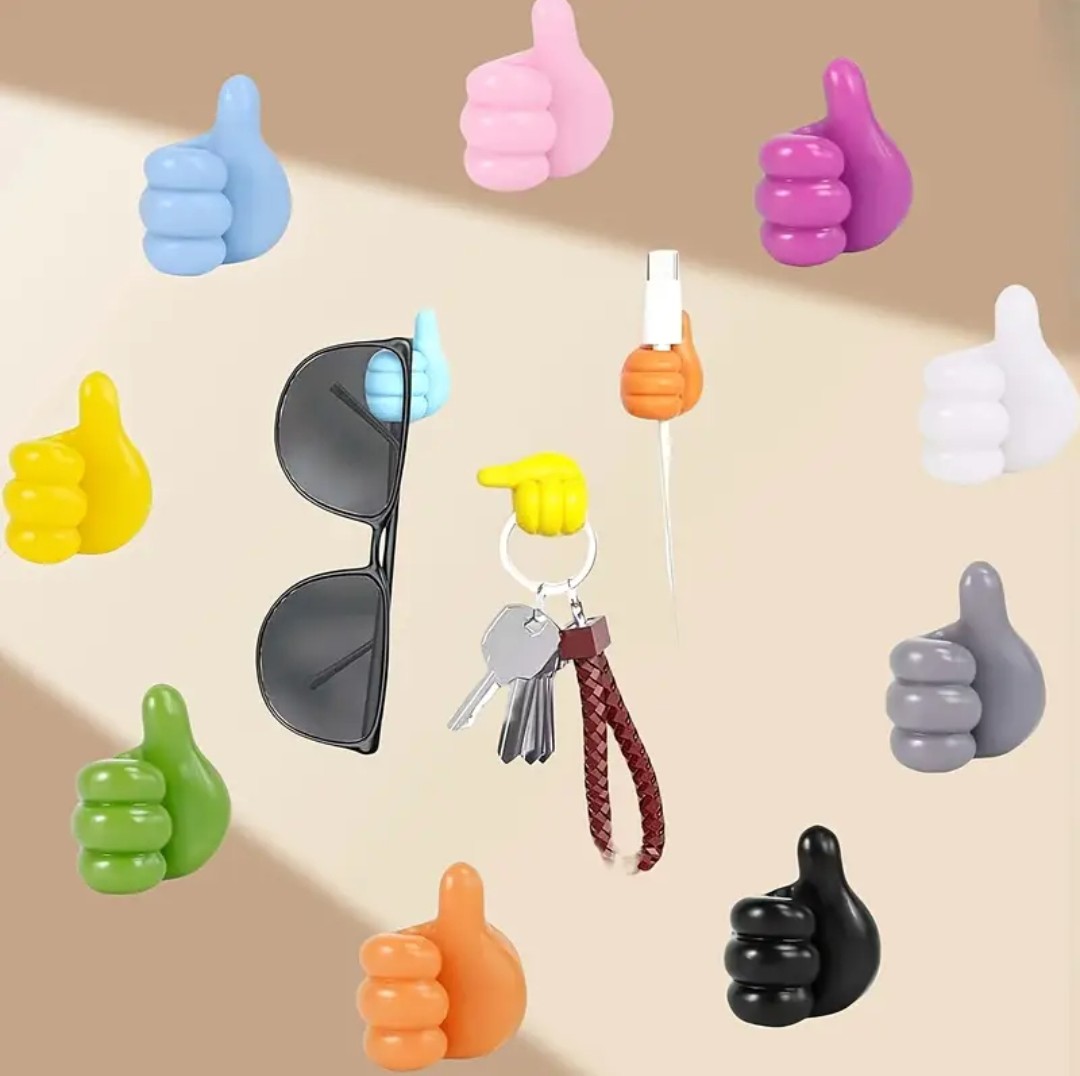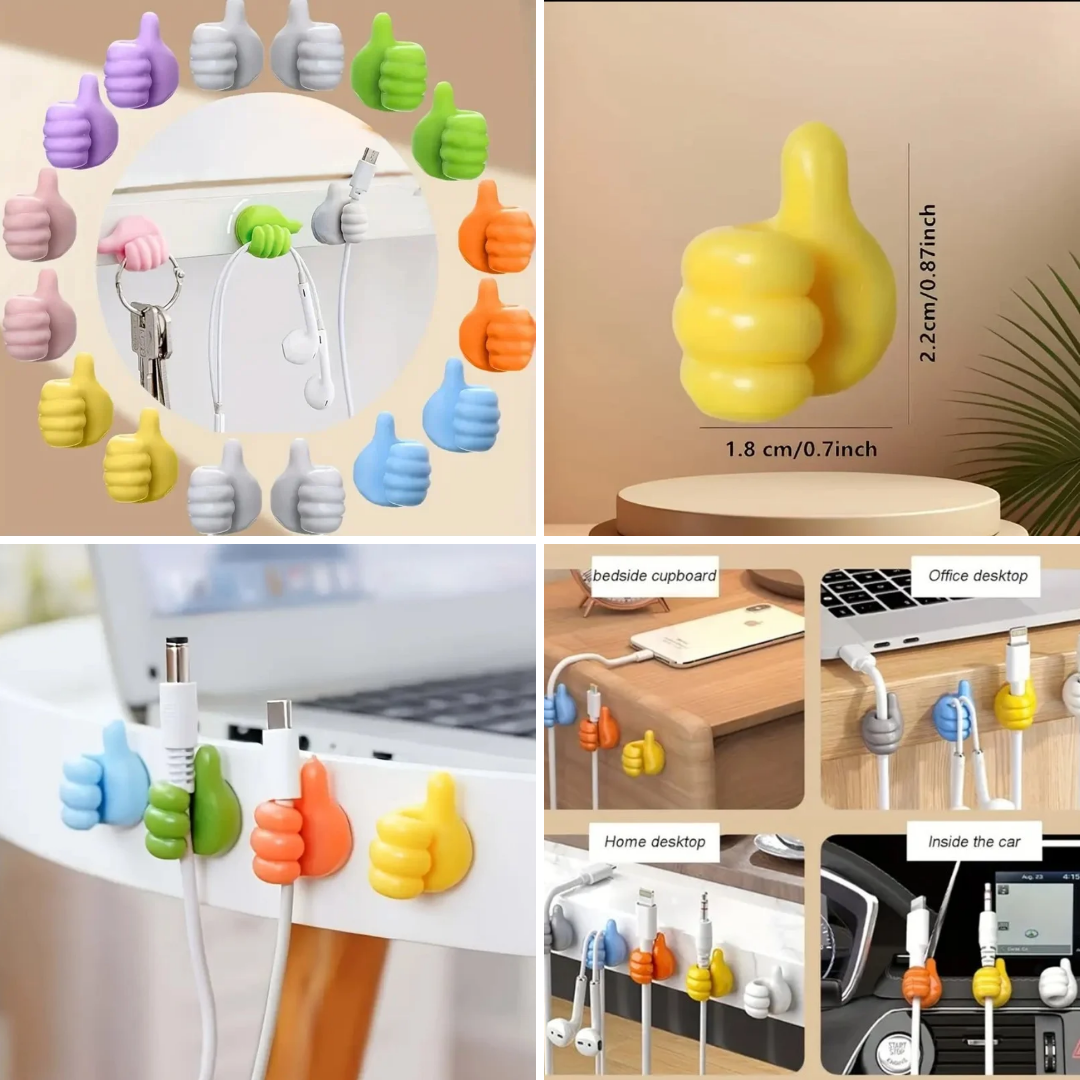 10 pcs Ganchos de Pared de Silicona Coloridos para Pulgar - Clips Autoadhesivos para Cables y Colgadores de Llaves, Organizador Multiusos sin Taladro para Oficina, Hogar o Espacio de Trabajo (Azul, Verde, Naranja, Amarillo), Organización de Espacio de Trabajo | Clips Creativos para Cables | Construcción de Silicona
