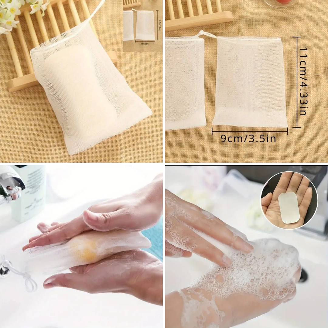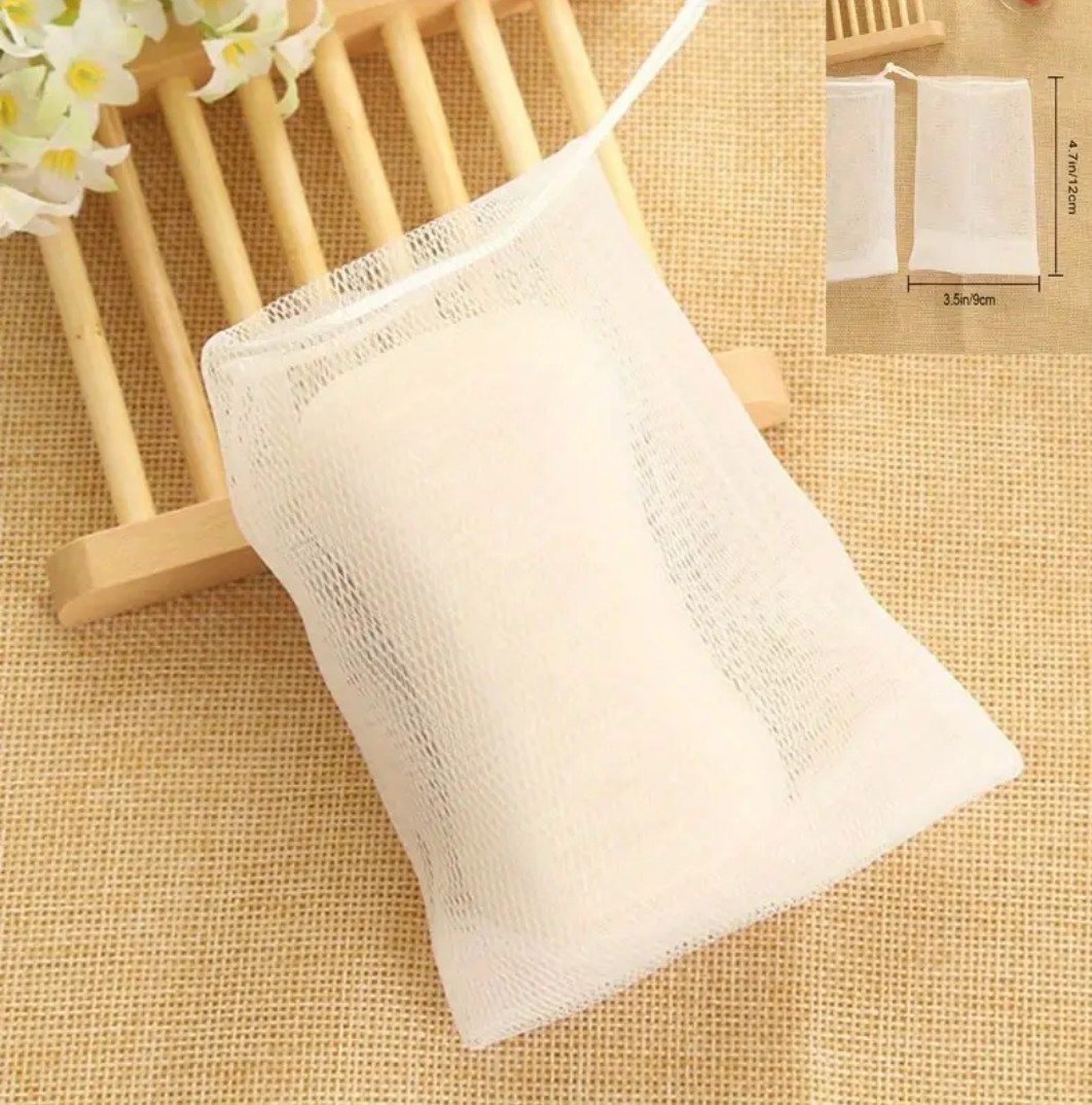 3 Bolsas de Malla para Jabón Sin Aroma Purezza con Cordón - Red Exfoliante Espumante de Lujo para Cuerpo y Cara, Cierre Seguro, Secado Rápido, Diseño que Ahorra Espacio
