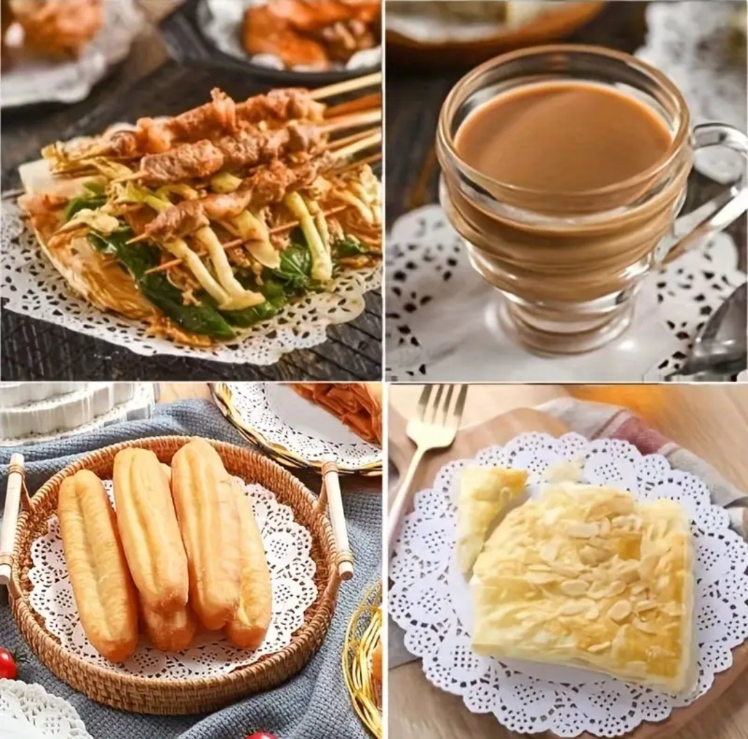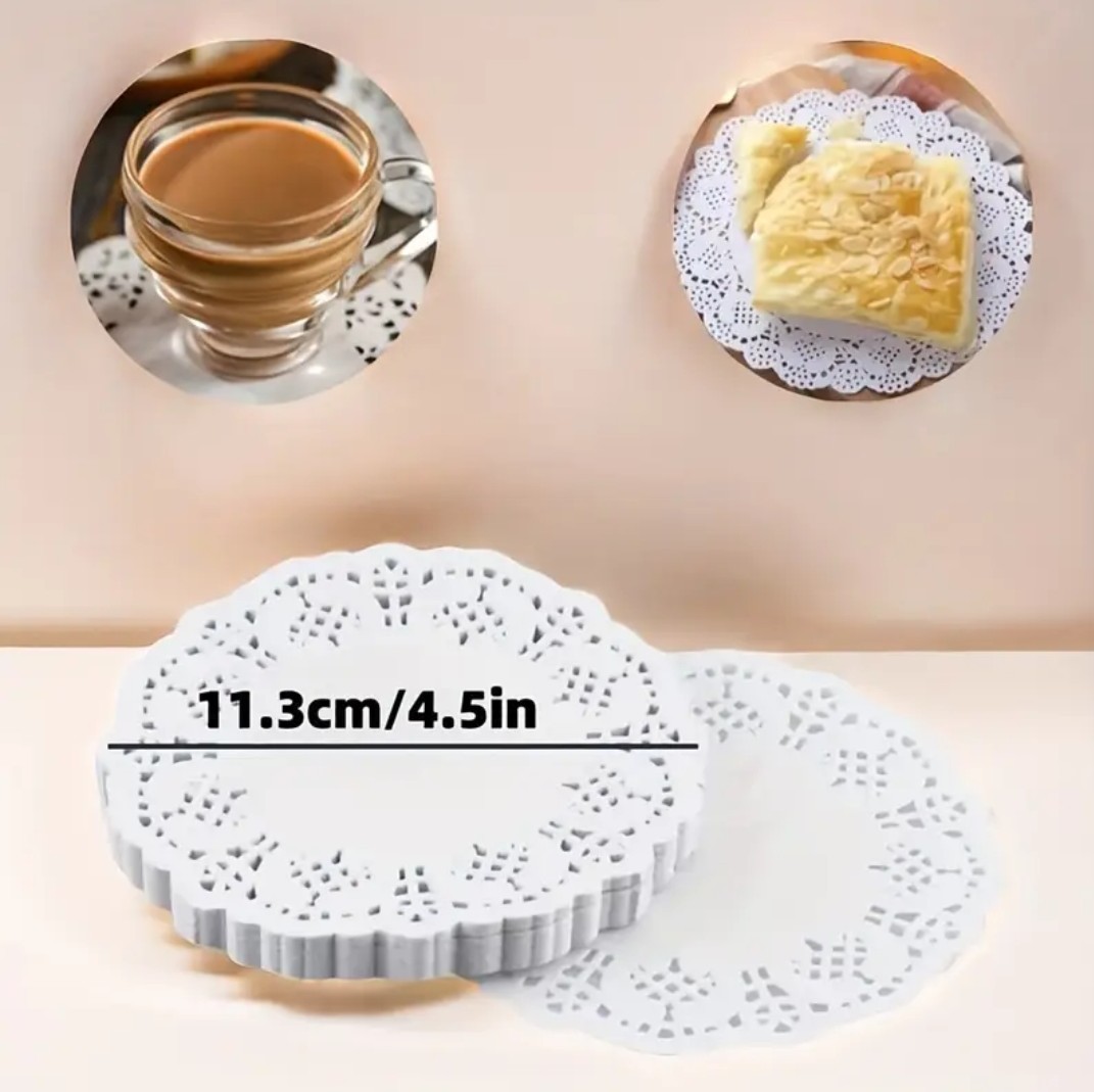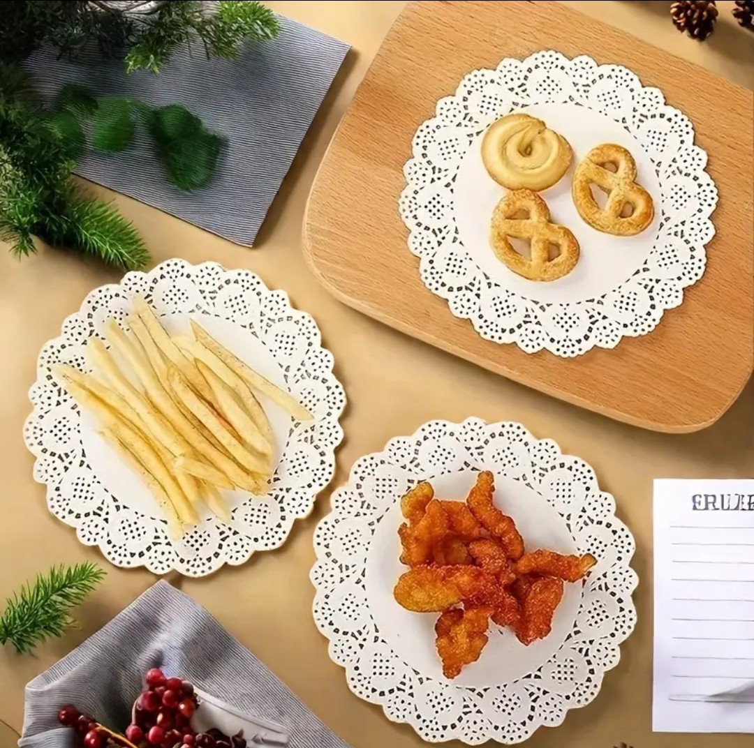 100 pcs Manteles Individuales Redondos de Papel - Forros para Cupcakes con Borde de Encaje para Postres, Comida Frita, Galletas - Decoración de Mesa para Fiestas, Bodas - Suministros para Hornear y Accesorios de Cocina